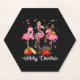 Porta-copo De Papel Feliz Natal Três Flamingo Com Papai Noel