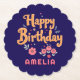 Floral Flowers Happy Birthday Handlettering Coaster. Celebrate a special birthday with this charming personalized coaster! Featuring a hand-drawn floral design, cheerful "Happy Birthday" text in playful orange script, and a custom name. Ideal for daughters, nieces, granddaughters, or friends.