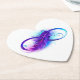 Símbolo infinito com uma bela pena pintada em cores roxas e azuis brilhantes sobre fundo branco.
