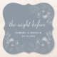 Círculo de papel elegante para sua jantar de ensaio, apresentando um fundo azul poeirado elegante com delicada arte de linha floral e nomes personalizados. Perfeito para celebrações de “A Noite Anterior” — sofisticado, descartável e personalizado para seus convidados.