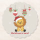 O leão do cartão de cumprimentos de Natal. Animais engraçados com presentes e neve nas férias. Também é engraçado para o natal em julho. Os leões são animais bonitos e perfeitos para o Natal.