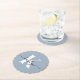Estas simples, elegantes e elegantes portas copos de papel de borda redonda, azul, com o seu primeiro nome numa letra de texto de tendência a preto e a sua primeira inicial em uma fonte moderna de boné a branco são perfeitas para manter as suas mesas e contadores livres de anéis de água. Eles absorvem gotículas para não se preocupar quando se diverte ou se diverte com uma bebida. Eles são na moda e tendências e, no entanto, muito clássicos.