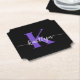 Estas simples e elegantes portas copos de papel ao estilo de ingresso preto com o seu primeiro nome em uma letra de script de tendência em branco e a sua primeira inicial em uma fonte moderna de boné em roxo são perfeitas para manter suas mesas e contadores livres de anéis de água. Eles absorvem gotículas para não se preocupar quando se diverte ou se diverte com uma bebida. Eles são na moda e tendências e, no entanto, muito clássicos.