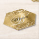 Brilhante de ouro brilhante com faíscas contra uma imagem gráfica fina de folha metálica laminada de metal amarelo-ouro amarelo-esfregado. Os estilos de fonte no monograma de caligrafia em preto-e-branco do rico podem ser personalizados. Todos os elementos brilhantes e brilhantes neste moderno design feminino são gráficos digitais. Uma porta copos de papel hexagonal glamourosa com forma glamourosa com precioso para seu 16.º aniversário ou outro evento marco.