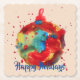 Ornamento do globo artístico, pintura, Porta copos de papel aquoso - Um ornamento lindamente pintado com feriados felizes é escrito na porta copos, mas você pode personalizar o texto para ler o que quiser ou apagá-lo completamente.