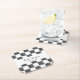Add a personalized touch to cocktail hours and more with these custom coasters. The paper coasters have a black and white checkerboard background featuring painted black squares. They are ready to be personalized with names and wedding date.