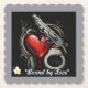 Esta ilustração antiga a preto-e-branco mostra um punho e uma arma ao lado de um coração vermelho sangrando, colocado contra um fundo escuro com sotaques leves e leves. Os toques de ouro agregam elegância, captando os temas intensos de amor e conflito. "A Imagem Original foi gerada pelo Meta AI. A IA gerou trabalho de arte. Licenciado sob CC BY-SA 4.0.