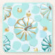 Uma pintura a óleo pastel macio de um padrão de cores azul-claro e metálicas com ouro e abóboras verdes. O fundo é uma parede branca. Há ouros e abóboras verdes espalhadas pelo padrão. A imagem geral tem uma aparência de pinceladas levemente limpa.