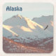Uma águia-careca (Haliaeetus leucocephalus) voa em frente da faixa de Chugach coberta pela neve perto de Anchorage, AK. Leitura personalizável de texto, "Alaska" também é exibida.