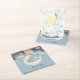 Baby Boy Celebration Square Paper Coaster peaceful sleeping baby in this charming invitation, perfect for welcoming your little prince. This design features a delicate watercolor illustration of a baby boy resting on a soft, fluffy cloud, framed by a lush arrangement of midnight blue and champagne gold roses.