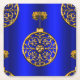 Um padrão de Natal colorido de bolas de Natal douradas sobre um fundo azul real para adicionar um toque de estilo e alegria às suas festividades de Natal e decoração de férias nesta época de Natal.