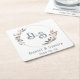 Porta-copo De Papel Quadrado Bege e Azul Floral Nome Personalizado Elegante