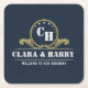 Porta-copo De Papel Quadrado Blue navy Monogram Initials elegant minimalist