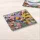 Brighten up your Easter table with these unique square paper coasters, featuring a stunning handcrafted paper-cut effect design. The vibrant pink and yellow bunny silhouettes, layered with spring flowers and decorated eggs, create a fun 3D visual texture that kids and guests will love. Made from sturdy, absorbent 50pt pulpboard, these coasters are both practical and decorative. Personalize each one with a name or festive message to create a one-of-a-kind party favor. Ideal for Easter brunch, classroom celebrations, or spring-themed birthdays. Sold in sets of 6.