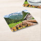 Porta-copo De Papel Quadrado Campo de registro na floresta com montanhas