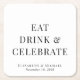 A porta copos de papel moderna decor e favorecimento para a sua recepção de casamento, janto de ensaio, festa de noivado e outros eventos de casamento com "Coma Bebida & Celebrar", seus primeiros nomes e sua data de casamento em tipografia elegante da serifa.