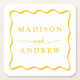 Adicione um toque de na moda à sua recepção de casamento, janto de ensaio, festa de noivado ou chá de casamento com estas portas copos de papel de Quadro de Onda Amarelo Moderno. As portas copos de casamento retrógradas exibem os nomes dos casais em letras amarelas em negrito cercadas por uma borda ondulada amarela contrastando com um fundo branco. As portas copos de casamento da moda foram desenhadas para coordenar com a nossa coleção de casamento do Modern Wavy Frame.