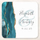 Porta-copo De Papel Quadrado Casamento Dourado de Teal de Script Geode Agate