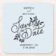 Porta-copo De Papel Quadrado Casamento Salve a Data Desenhada de Mão Azul