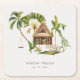 Esta porta copos de papel de casamento tropical é uma design da selva tropical com as cores da natureza. Apresenta palmeiras, florestas tropicais lúcidas e bangalôs aninhados num belo cenário do paraíso tropical.