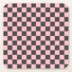 A brown and pink checkerboard pattern. Alternating squares create a balanced, symmetrical design. The tone is playful and visually striking.