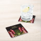 Christmas Celebration Red Candles Green Leaves Square Paper Coaster. Unique, beautiful, stylish design. Easy to be personalized. Font style, size and colors can be changed. Matching items available.