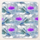 Porta-copo De Papel Quadrado Cinza e padrão de flores roxas