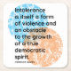 A intolerância é, em si mesma, uma forma de violência e um obstáculo ao desenvolvimento de um verdadeiro espírito democrático. - Citações Democráticas Mahatma Gandhi