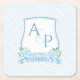 Um elegante design de Crest de Casamento, azul e branco, com as minhas ilustrações originais de aquarela.