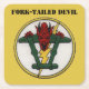 Logotipo colorido de desenho animado do Esquadrão P-38 com o diabo de cauda-furada em letra de estêncil preto. "O P-38 Lightning foi conhecido pelos pilotos alemães da Luftwaffe como o "Diabo Perfurado" devido ao seu design único. Muitos dos esquadrões de caça durante a Segunda Guerra Mundial tinham suas próprias insígnias únicas, geralmente desenhadas pelos homens em seus esquadrões. Este design foi usado pelo 49º Esquadrão de Combate em Foggia, Itália.