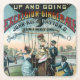 Circa 1885 - Anúncio para Ginger Ale com balão e cesto com tratadores pretos. Duas mulheres bebem Excelsior Ginger Ale, implicando que o carbonato ajuda o balão a subir. Imagem de duas mulheres elegantemente vestidas em vestidos finos e capuzes embarcando em passeio de balão de ar quente, uma fica dentro na cesta segurando um lenço de renda com um operador de balões moído com binóculos e um monóculo, a outra bebe gengibre de um copo quando ela começa a subir uma escada de corda para o artesanato; dois homens afro-americanos com garrafas gengibre frequentem o balão; uma grande multidão de pessoas assiste o espetáculo de bancas atrás de uma cerca branca de madeira pintada com slogans publicitários
