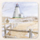 Experimente uma pálida manhã de inverno na costa de Massachusetts, nesta pintura de cor d'água encharcada de Plymouth Light, no inverno. Usando cinzentos sutis, claros, amarelos claros e legal azuis, esta pintura aquosa recria uma vista rígida de meio-inverno da torre icônica da Gurnet Light. Originalmente construída em 1768, Plymouth Light era um dos dois faróis do Gurnet Point. A torre de pirâmide octogonal foi construída em 1842 depois que as torres anteriores desabaram. Para captar este marco histórico no sol de inverno, o artista usa sombras sutis em cinzas e azul, destacando articamente a arquitetura única da estrutura. Vermelhos brilhantes, azuis e verdes contrastam brilhantemente com a paisagem de inverno branqueada ao sol, enquanto ramos esqueletais e postes de cerca sombreados no primeiro plano fornecem um vislumbre único da Baía de Plymouth.