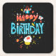 Porta-copo De Papel Quadrado Feliz aniversário em preto