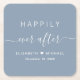 Porta copos empoeirada de papel azul para a sua recepção de casamento, janto de ensaio, festas de noivado, chás e outras celebrações de casamento com "Feliz Sempre Depois" em uma mistura de tipografia simples branca e um roteiro suave, seus primeiros nomes se juntaram por um coração e sua data de casamento.