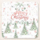 Porta-copo De Papel Quadrado Feliz Natal, Red e Green Snowy Trees