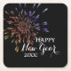 A porta copos de papel Fireworks apresenta fogos de artifício coloridos brilhantes em um fundo preto rico. Ideal para uma festa de fim de ano. © Manhã 6