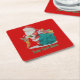 Esta porta copos de Natal original tem uma foto de Papai Noel com seu saco cheio de presentes todos enrolados e prontos para o parto de Natal, você pode ver um ursinho amarelo com um arco vermelho e um coelho azul saindo do topo do saco verde. Papai Natal está segurando uma meia de Natal colorida, vermelha e listrada de ouro, que tem um bastão de doce e presentes menores, ele também está segurando um pequeno presente embrulhado na mão. A ilustração bonita é produzida a partir de uma pintura original de cor de água que eu criei alguns anos atrás. A imagem festiva colorida e tradicional parece muito bonita nesta porta copos de Natal e tenho certeza que trará muitos sorrisos e alegria durante o período festivo. Esta é uma porta copos festiva personalizável, você pode personalizá-la com seu próprio texto.