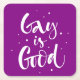 Este trabalho de arte apresenta texto de script com a frase "Gay é bom".