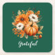 Porta-copo De Papel Quadrado Grateful Autumn Floral Pumpkin Green Square