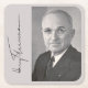 Conjunto de 6 portas copos descartáveis de conselho de pasta quadrada com uma imagem de Harry S. Truman (8 de maio de 1884 - 26 de dezembro de 1972) e sua assinatura.