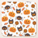 Teste padrão bonito super do Dia das Bruxas. Nesta ilustração você pode ver abóboras, aranhas, corujas, estrelas e doces. O esquema de cores deste design do Dia das Bruxas é laranja, preto e branco.