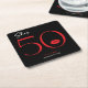 Moderno e chique, esta porta copos de aniversário declara, "ela tem 50" e combina preto clássico e branco com sotaques de vermelho vivo, com um par lúdico de lábios. É um design mínimo é um design simples e divertido para celebrar o aniversário do marco. Criado pela imprensa simplesmente de farmácia.