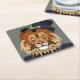 Este retrato das características de design de um leão no terno e no chapéu de negócio de um homem.