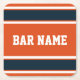 Grande artigo para o fã de Chicago em sua vida. As portas copos listradas azuis escuro, alaranjadas, e brancas com texto customizável alinham no branco. As cores que nós escolhemos para esta série de portas copos combinarão suas cores das equipes do favorito, nós apenas não podem mencioná-las aqui. Aperfeiçoe para fan de futebol e bares ou bares locais.