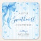 This design features a Valentines themed baby shower "A Little Sweetheart Is On The Way" with a blue bow ribbon and water coloured pastel blue love hearts. Perfect for a baby boy baby shower theme.