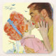 Artista: Bernard D'Andrea | Senhora de cabelos vermelhos beijando o homem atrás dos girassóis com uma cadeira azul e um gato.