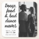 O casamento salva as portas copos de data, perfeito como um único salvamento da data do seu próximo casamento. Engraçado design de texto que diz "Booze, comida e maus passos de dança" Personalize com sua data de casamento, nomes e fotos.