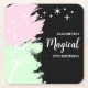 Magical kids birthday with stars and bubbles coming from a star shaped wand against a light pink and mint green background.
