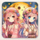 Porta-copo De Papel Quadrado Menina de anime Hippie Moon Girls Dando Sinal de P