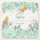 Porta-copo De Papel Quadrado Mint Dourada Floral Butterfly Quinceañera